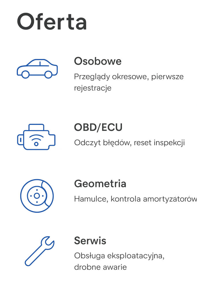 Przeglądy rejestracyjne – badania okresowe i pierwsze rejestracje dla samochodów osobowych, dostawczych, motocykli i ciągników.
